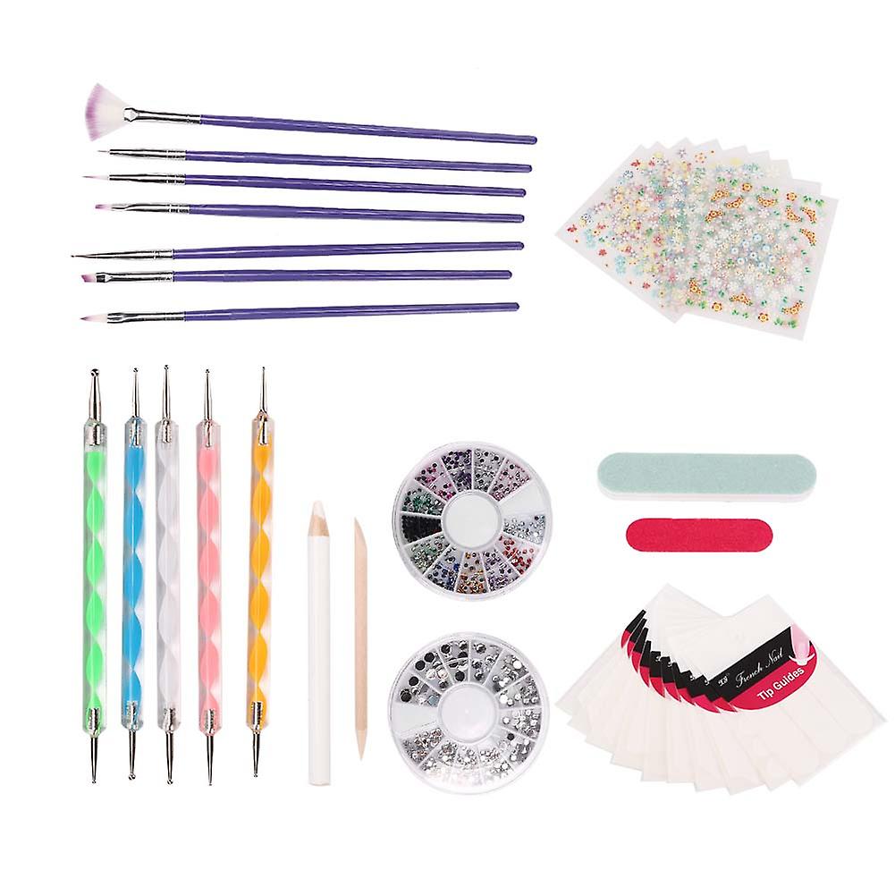 Manicure tool set with brush, painting and dotting pen, nail file, stickers and buffing block