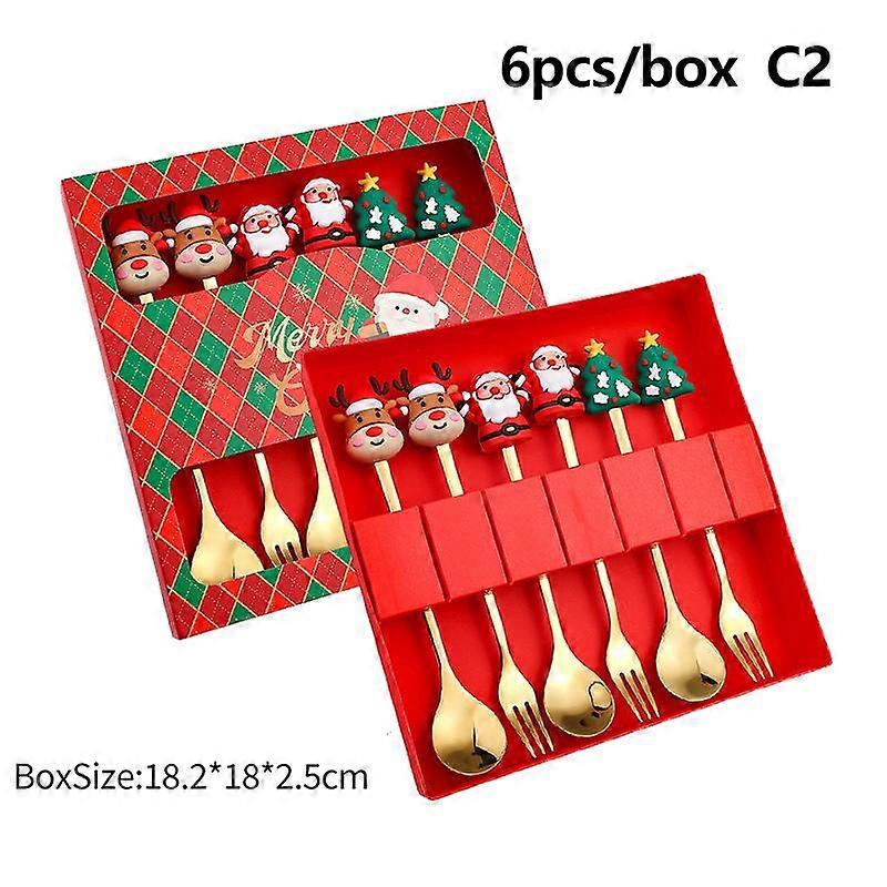 2/4/6Pcs Christmas Fork And Spoon Set,Stainless Steel Creative Tableware,Coffee Tea Dessert Forks And Spoons Gift Set