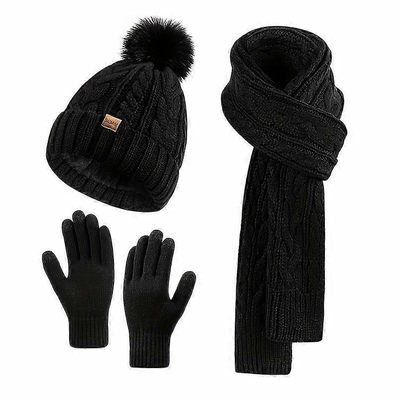 2025 Winter Beanie Hat Scarf Gloves Set for Women, Pom Pom Fleece Lined Hat Long Scarf Neck Warmer Touchscreen Gloves for Cold Weather
