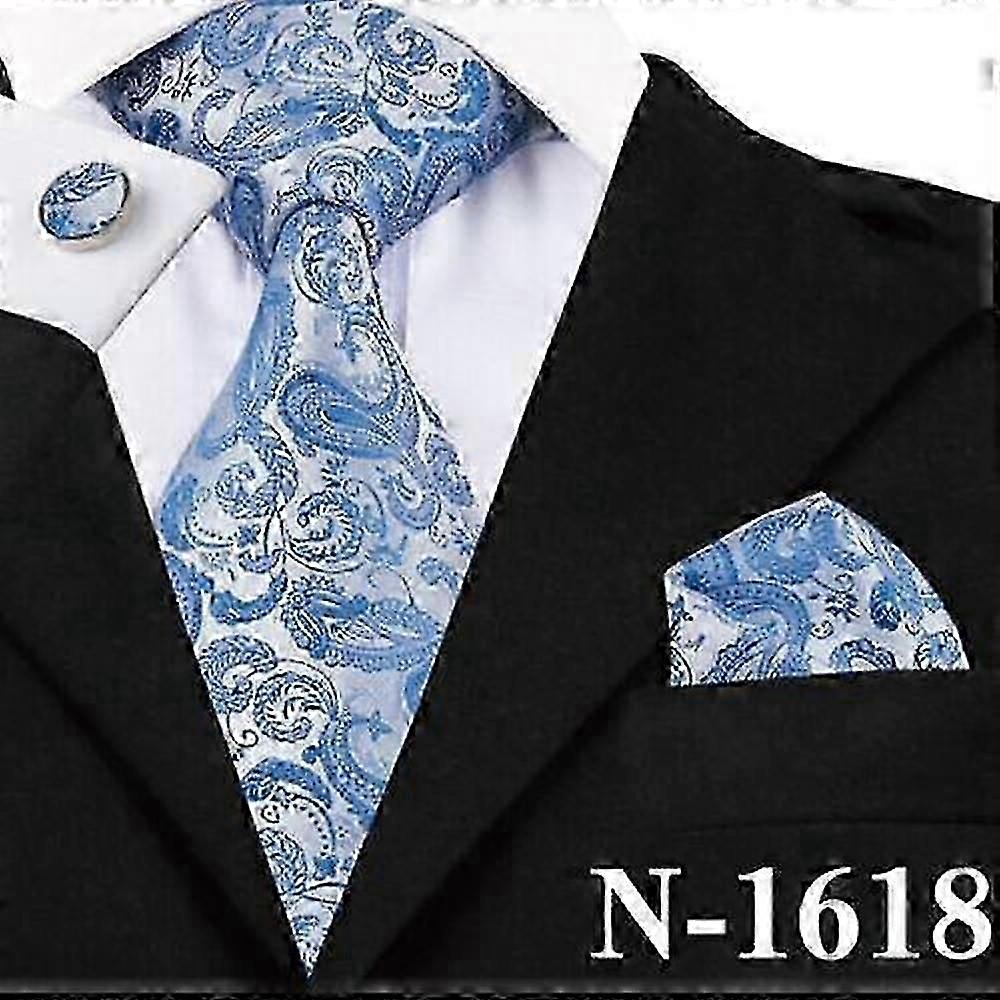 Men's Silk Tie Set with Pocket Square and Cufflinks for Wedding & Formal Events