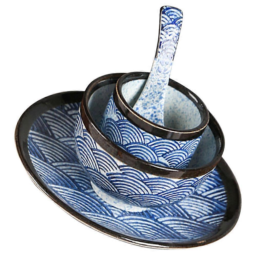 Porcelain Dinnerware Set 1 Set Designed For Friends Gatherings With Bowl Shaped Arc Dark Blue Color Resistant To Stains
