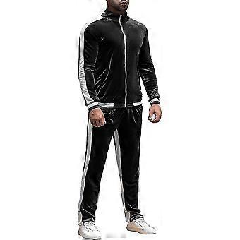Conjunto de Jogging de Veludo para Homens 2 Peças de Veludo com Capuz Jaqueta e Calças