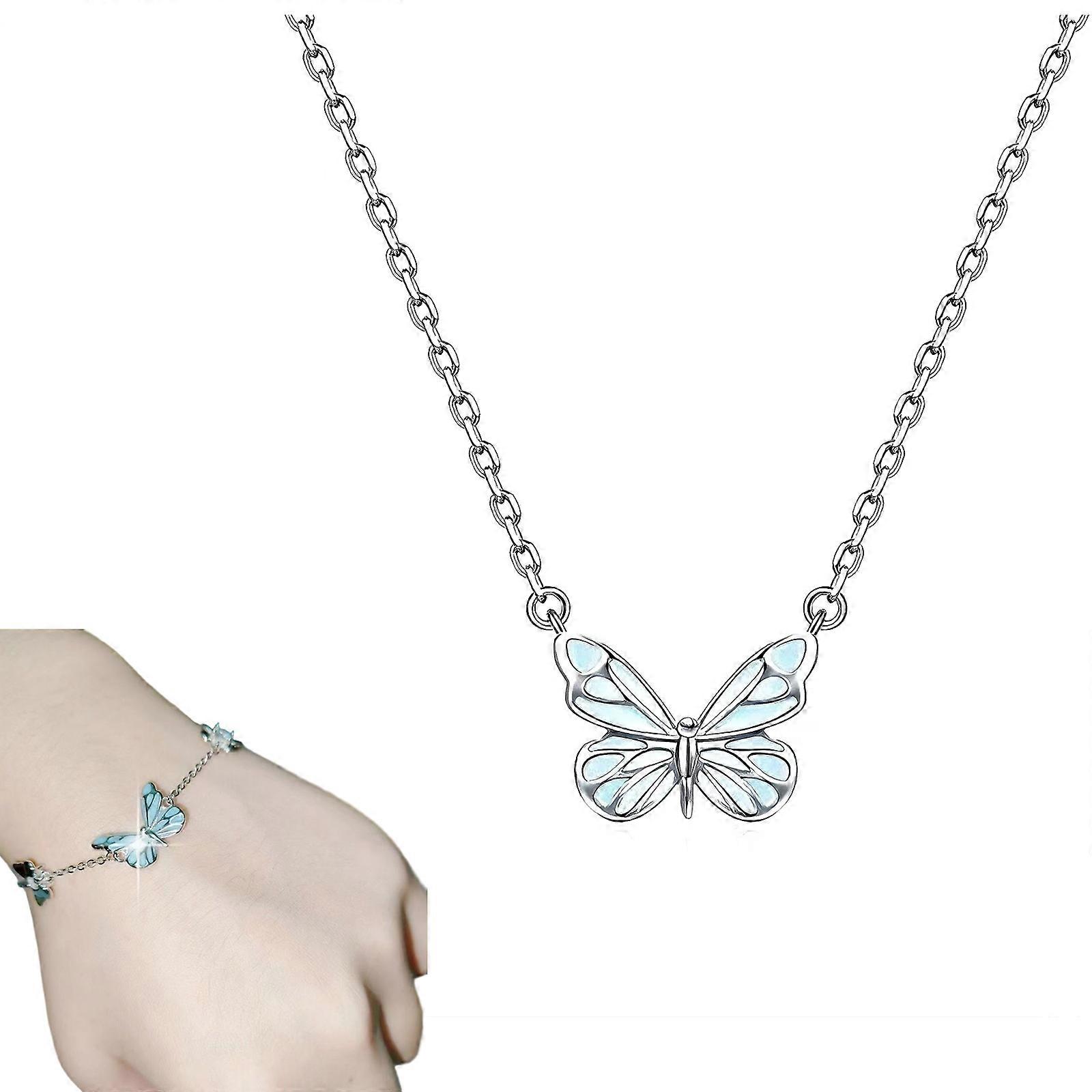 Glowing Butterfly Jewelry Set For Evening Incidents Bedlight Necklace Bangle Combination Elegant Metal Mixture Plan Multicolor