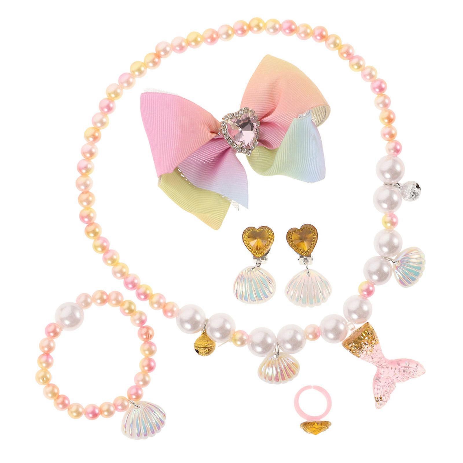 Mermaid Theme Jewelry Set Necklace Ring Bracelet Earrings 4Sets for Girls