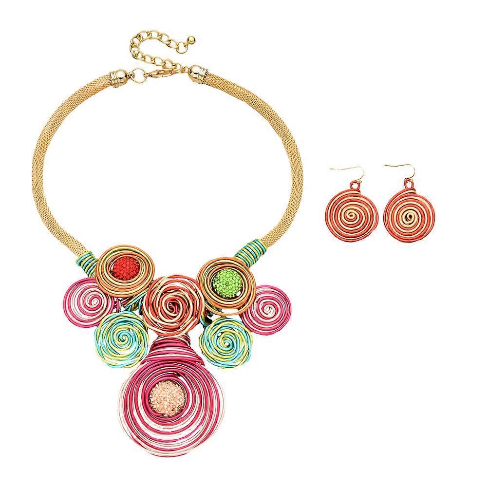 African Style Jewelry Necklace and Earrings Set for Women 1Set Colorful
