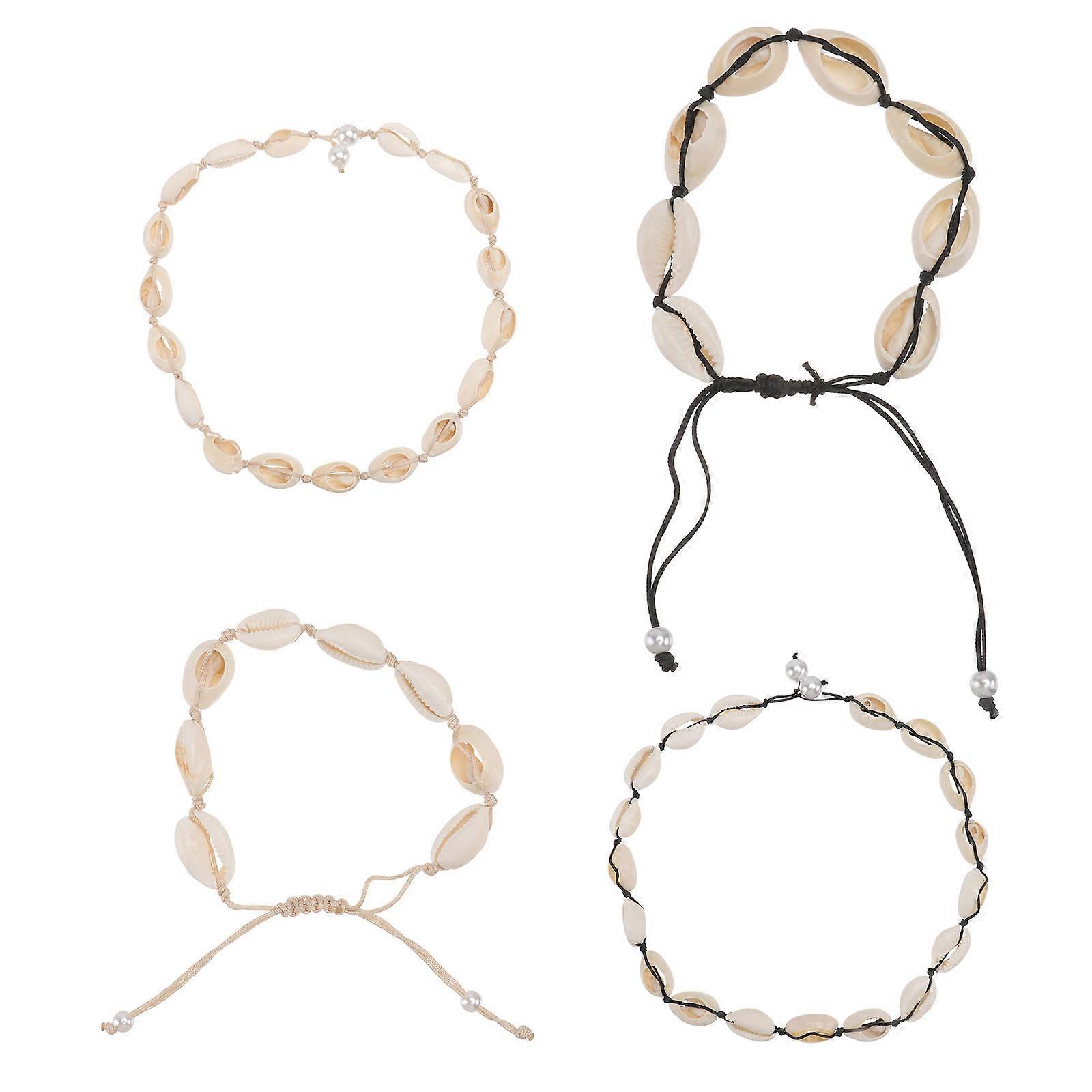 Women Jewelry Shell Set for Lady with 2Sets Beach Bracelet and Necklace