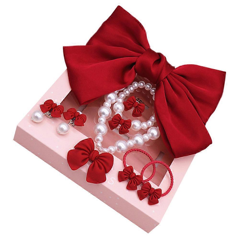 Kids Jewelry Set Red Bowknot Hair Clip Necklace Bracelet Ring 1Set Resin