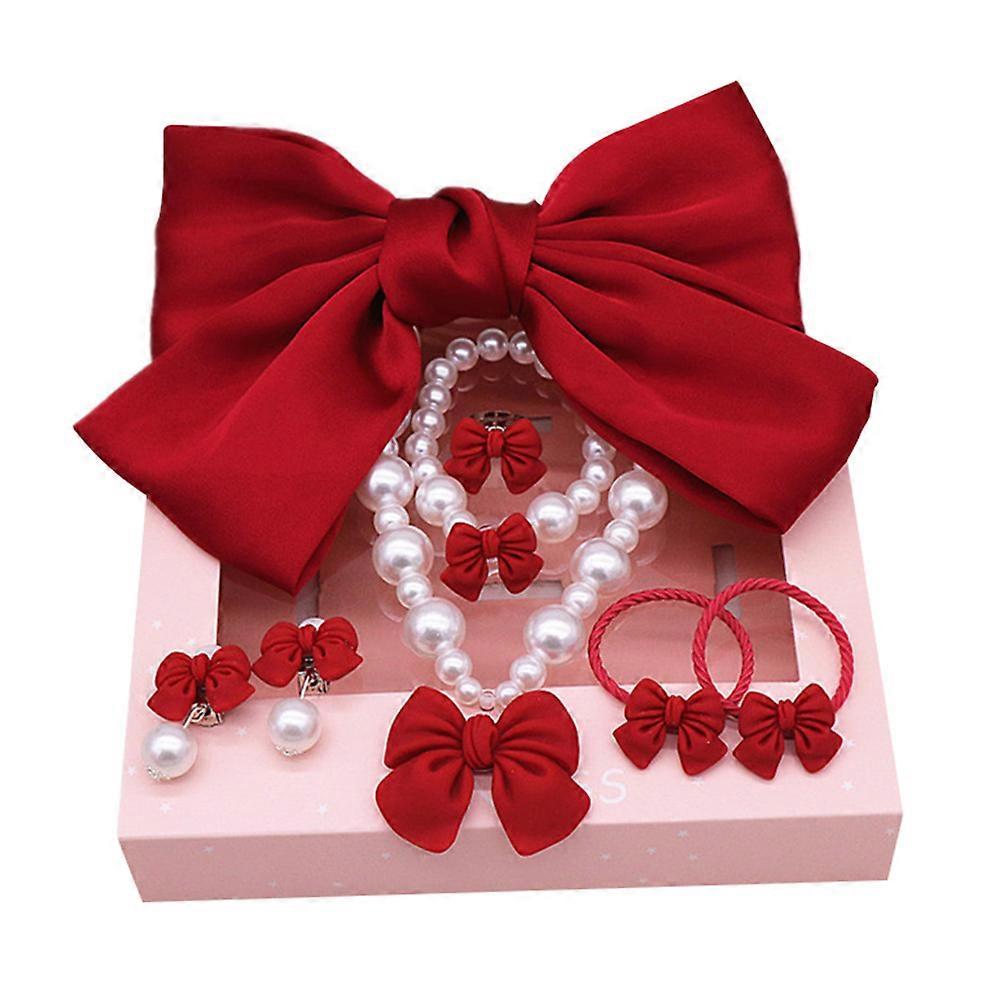 Kids Jewelry Set 1 Set With Bow Hairpins For Children Red Color Decoration 7Pcs