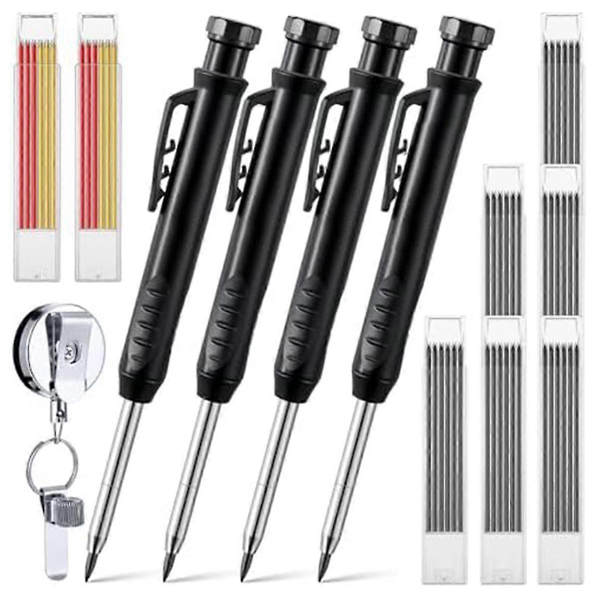 This woodworking pencil set will meet your woodworking marking needs. The woodworking pencil is designed with a 45mm long tip that can reach narrow areas that other woodworking pens cannot reach, allowing you to draw accurately; Compared to traditional woodworking pencils, this mechanical woodworking pencil has a metal barrel design , sturdy and not easy to rust; the woodworking pen also has a moderate grip and built-in sharpener and clip for better woodworking The refills of this construction pencil are thick and smooth, not easy to break or fade; Comes with black, yellow and red refills, enough colors and quantities to meet your different woodworking marking needs; The refills of this woodworking pencil Can be used on many different material surfaces such as metal, plastic, wood, paper, etc. This woodworking pencil set includes a retractable draw pen holder, the retractable length of the pen clip is about 28.74 inches, providing you with enough distance for use; when using, you can fix the pen on the clip, Attach the clip to your shirt or pants pocket so you don't have to worry about losing your pen while drawing The markings of this mechanical carpenter pencil are clear and easy to read, making it Perfect for , and other people with woodworking marking needs; it is also a good Christmas your loved ones and friends. Why choose our woodworking pencil set? 1. Extended 45mm tip allows easy access to tight areas. 2. Portable retractable clip, no need to worry about losing the pen. 3. A number of refills, a of colors, can be used for multiple purposes. 4. Thoughtful grip. 5. High-quality woodworking pencils and refills, not easy to break. 6. Markings on surfaces. Our woodworking pencil set is not only practical, but also makes a great your loved ones. Set: B Material: plastic colour: black Package Contents: 1 x retractable pen holder 4 x woodworking pencil 48 x replacement (8 boxes of refills/colors as shown in the figure) Only the above package content, other products are not included. Note: Light reflection and different displays may cause the color of the item in the picture a little different from the real thing. The measurement allowed error is +/- 1-3cm.