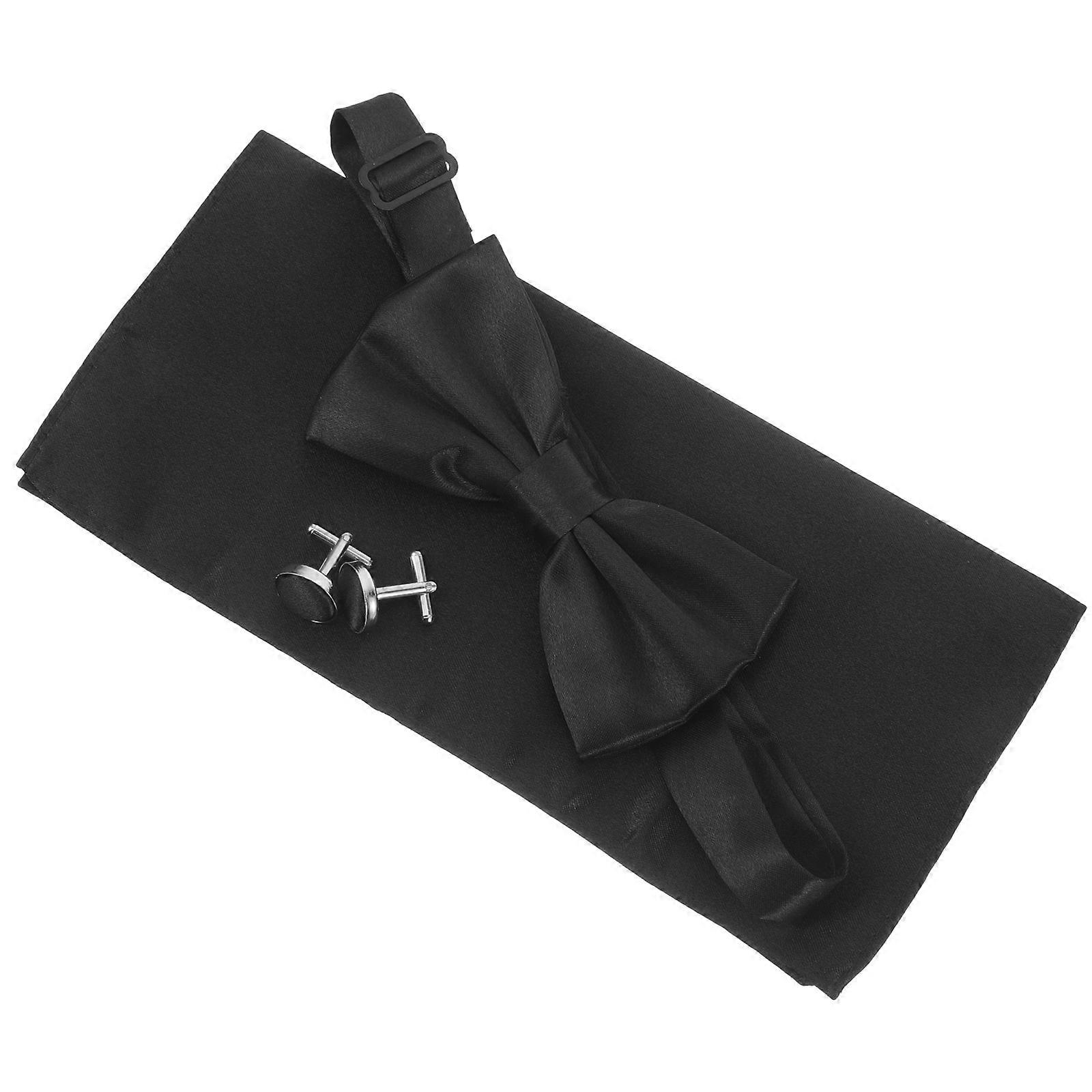 Satin Bow Tie Handkerchief and Cufflinks Set for Mens Formalwear 3Sets