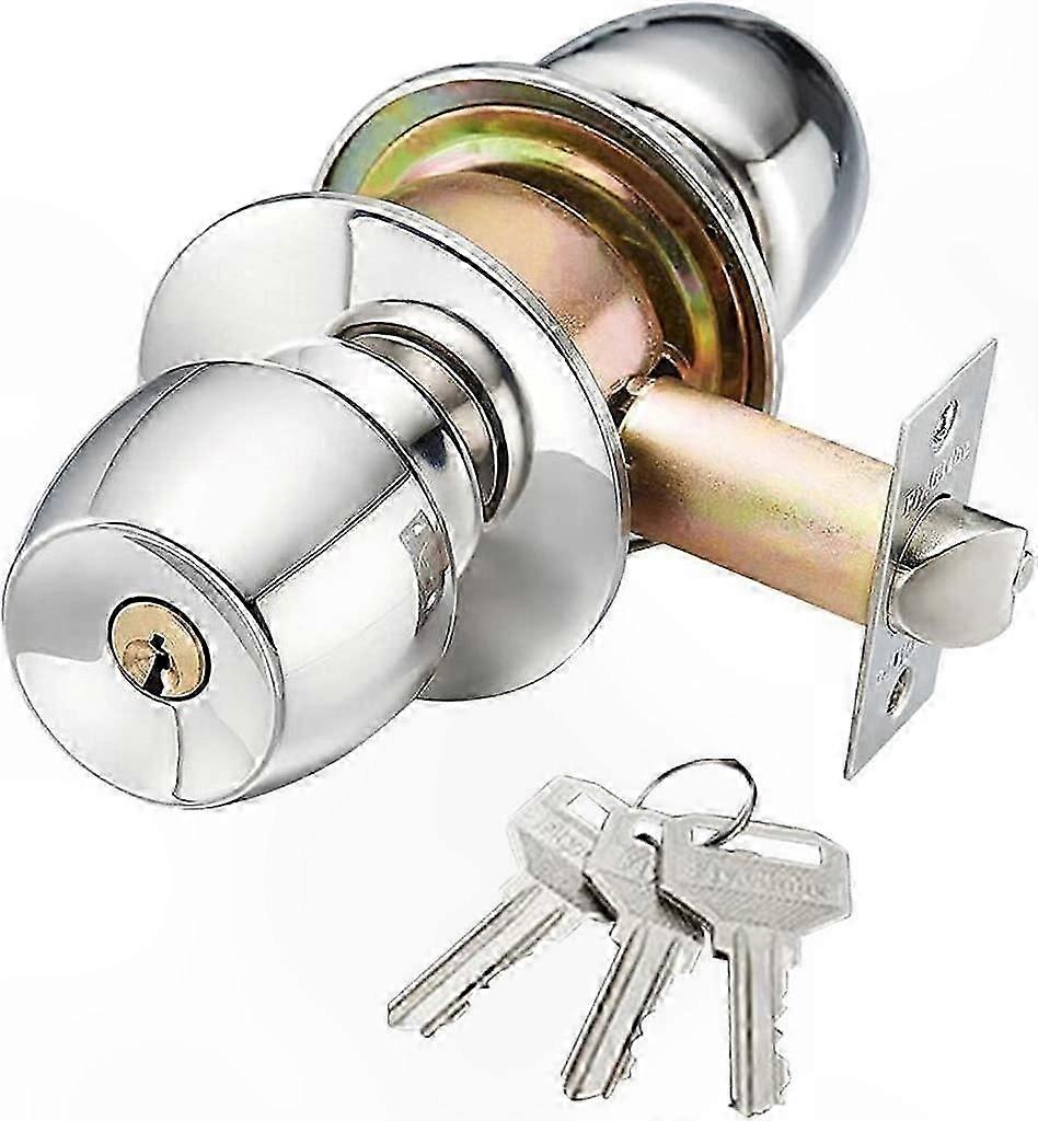 Stainless Steel Keyed Door Knob Set, 60mm Diameter Exterior Handle with Ball Knobs and Keys