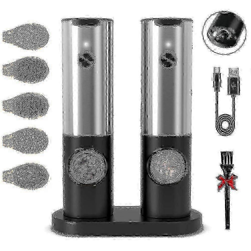 Electric Salt and Pepper Grinder Set with USB Charging Base, Adjustable Rechargeable Automatic Mill, 2-Pack hwy