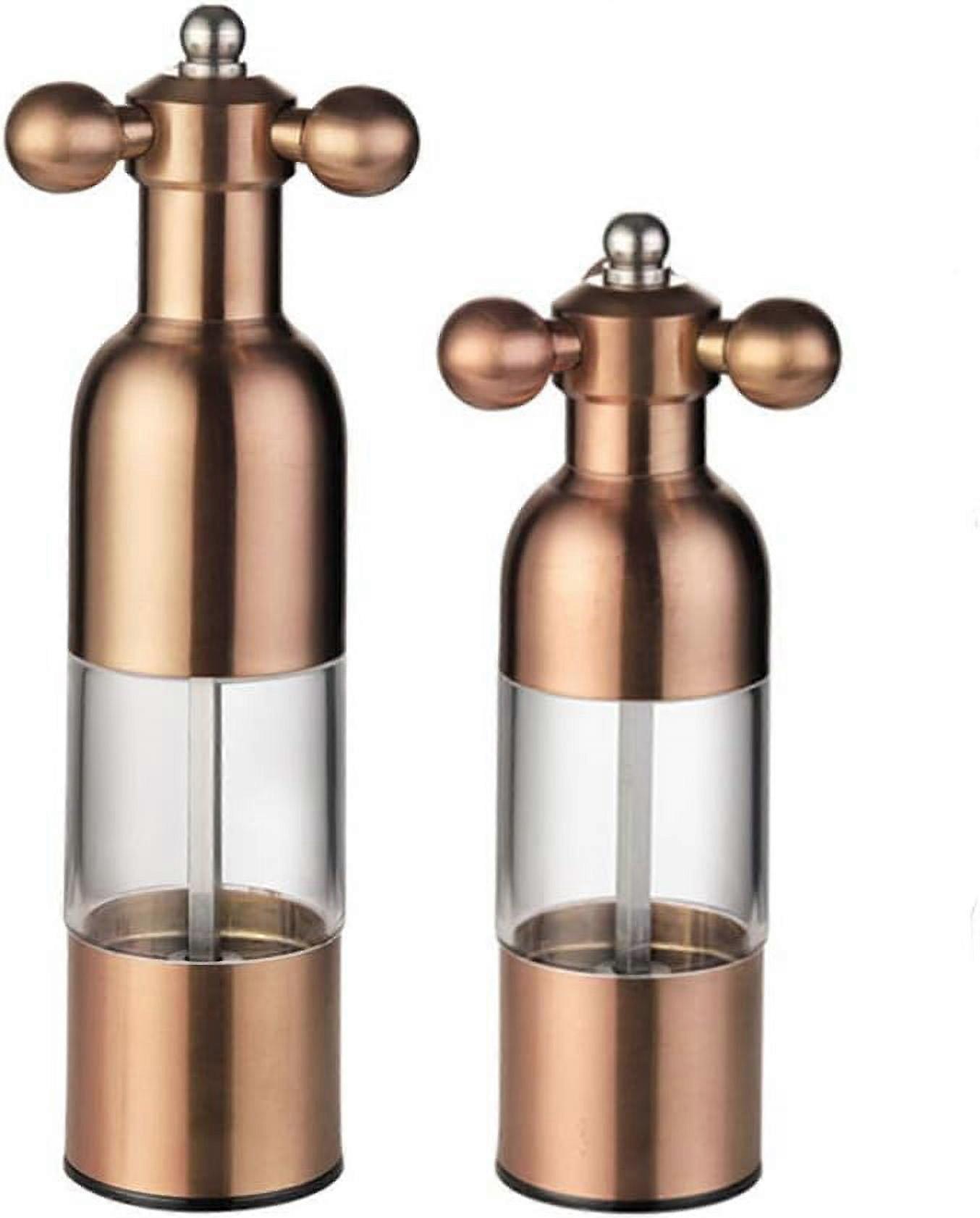 Salt & Pepper Grinder Set, Manual Stainless Steel with Handle, Refillable, Adjustable Coarseness, Compatible with Rose Gold Faucets, 2PC