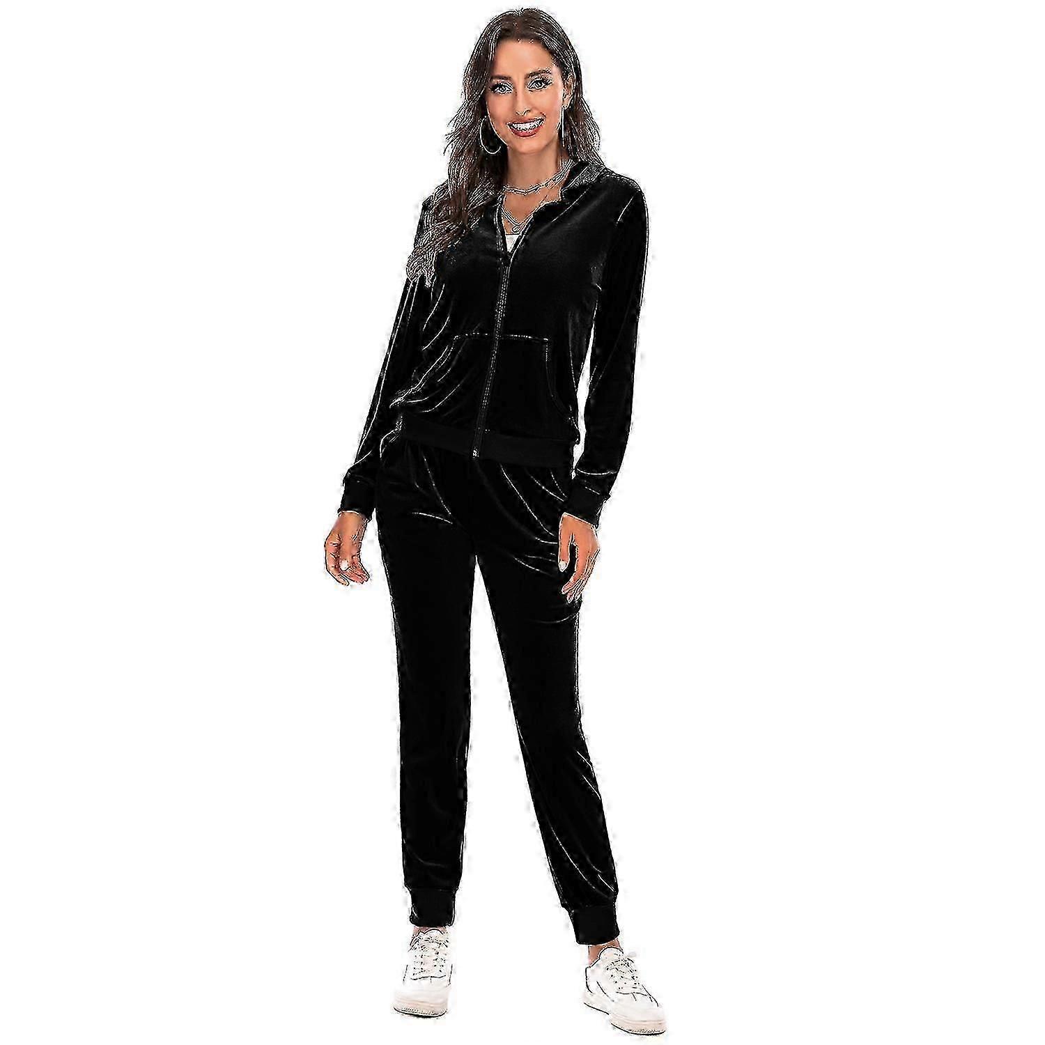 Women Sports Tracksuit Relaxed Zip Up Hoody and Jogger in Velvet Super Soft Stretch Velour Lounge Jacket Top and Bottom Set