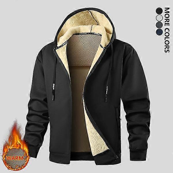 Autumn and Winter Outfit, Men's Hooded Jacket, Fleece Lined Coat, Polyester Fiber, Solid Color, Zipper Closure, Slightly Stretchable, Long S