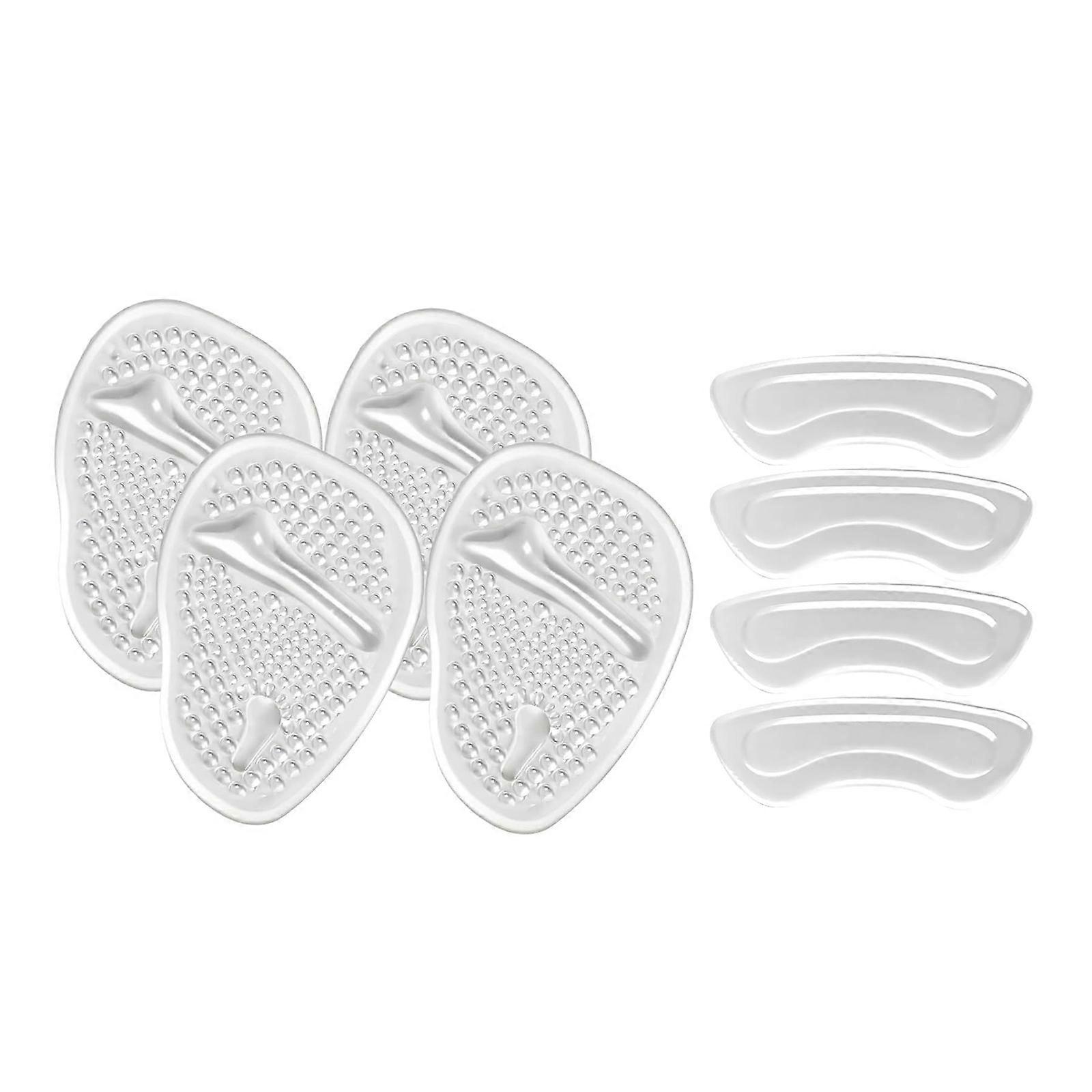 Breathable Thickened High Heel Liner Cushions Set wtih 2 Forefoot Cushioning Pad and 2 Back of Heel Pad for Women transparent