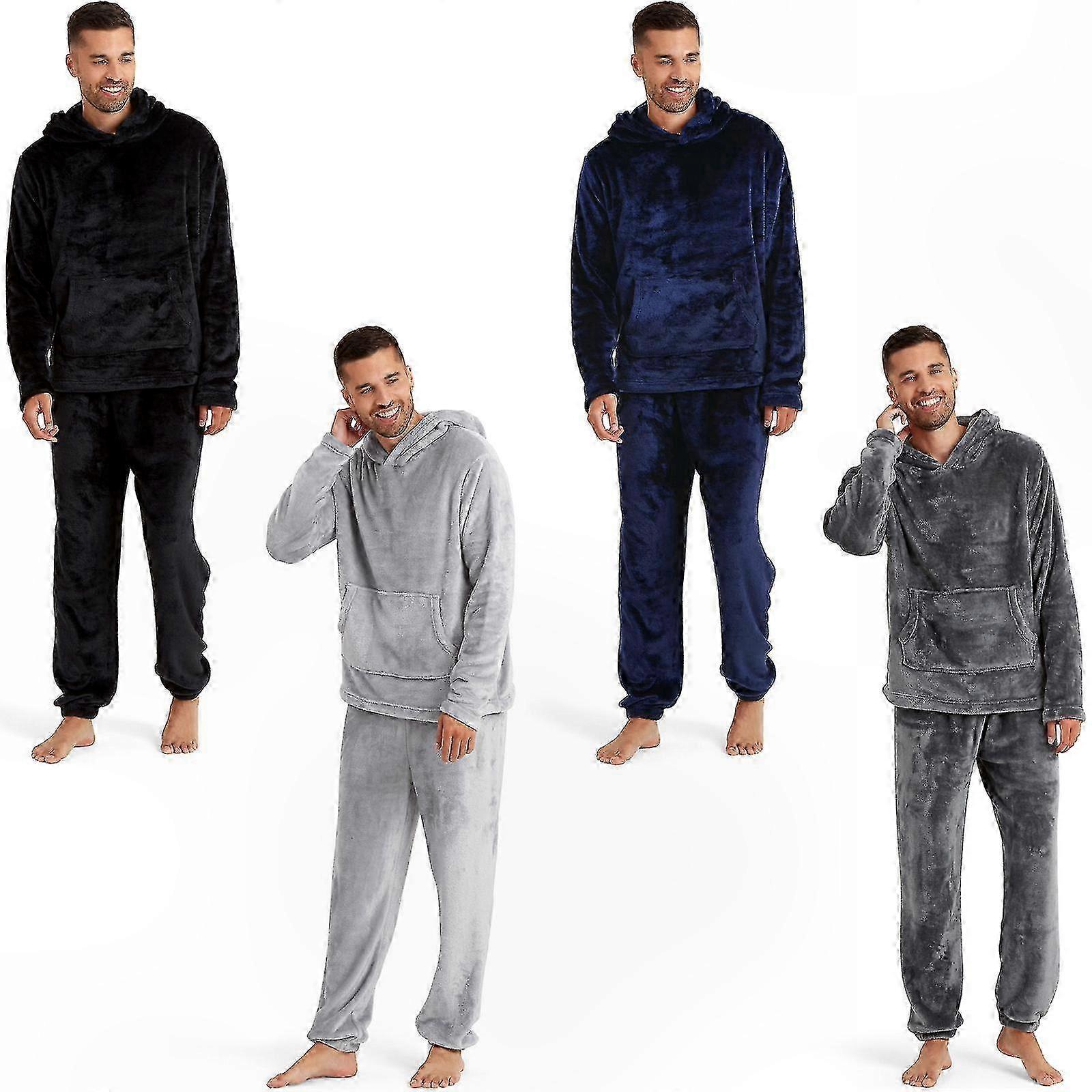 Soft Fleece Hooded Pajama Set for Men - Comfortable Lounge Wear Top and Bottoms