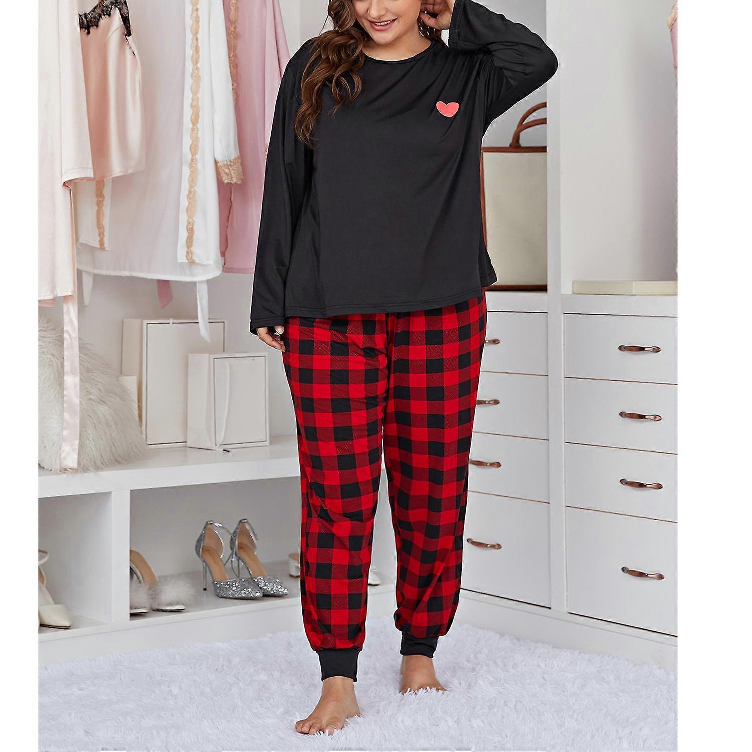 Women's Plus Size Buffalo Plaid Jogger Pajama Set Long and Short Sleeve Tops and Pants 2 Piece Matching Pjs Sleepwear Lounge Sets Soft Cute 1XL-5XL