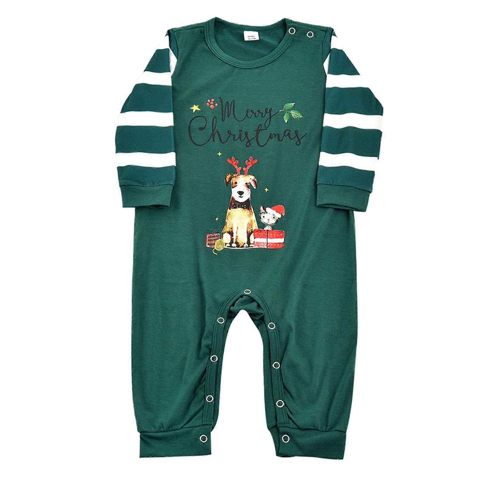 Christmas Family Matching Pajamas Set Cartoon Print Striped Long Sleeve Sleepwear for Men Women Children