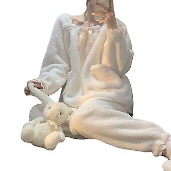 1、FUZZY PAJAMAS SET: Super sweet pajama set with two large capacity pockets at the top plus a pair of loose matching leggings. 2、CUTE AND SWEAT: Lace trim winter nightdress with cute styling design, you can match with the same modeling shoes to create a warm and sweet night ambience. 3、LOOSE FITTING: Fleece hooded nightdress, thickened, loose fit, suitable for different figures. Perfect for winter home, or walking the dog, etc. 4、WINTER LOUNGEWEAR: Soft and comfortable pajama set will help you withstand the cold winter days, and the lace trim design makes you look more sweet and cute. 5、SOFT AND WARM: Comfortable and soft pajama for women, made of premium flannel fabric, delicate touch, comfortable and warmer. 1 x Sleepwear1 x Pants Item Type: Women Pajamas SetMaterial: Flannel