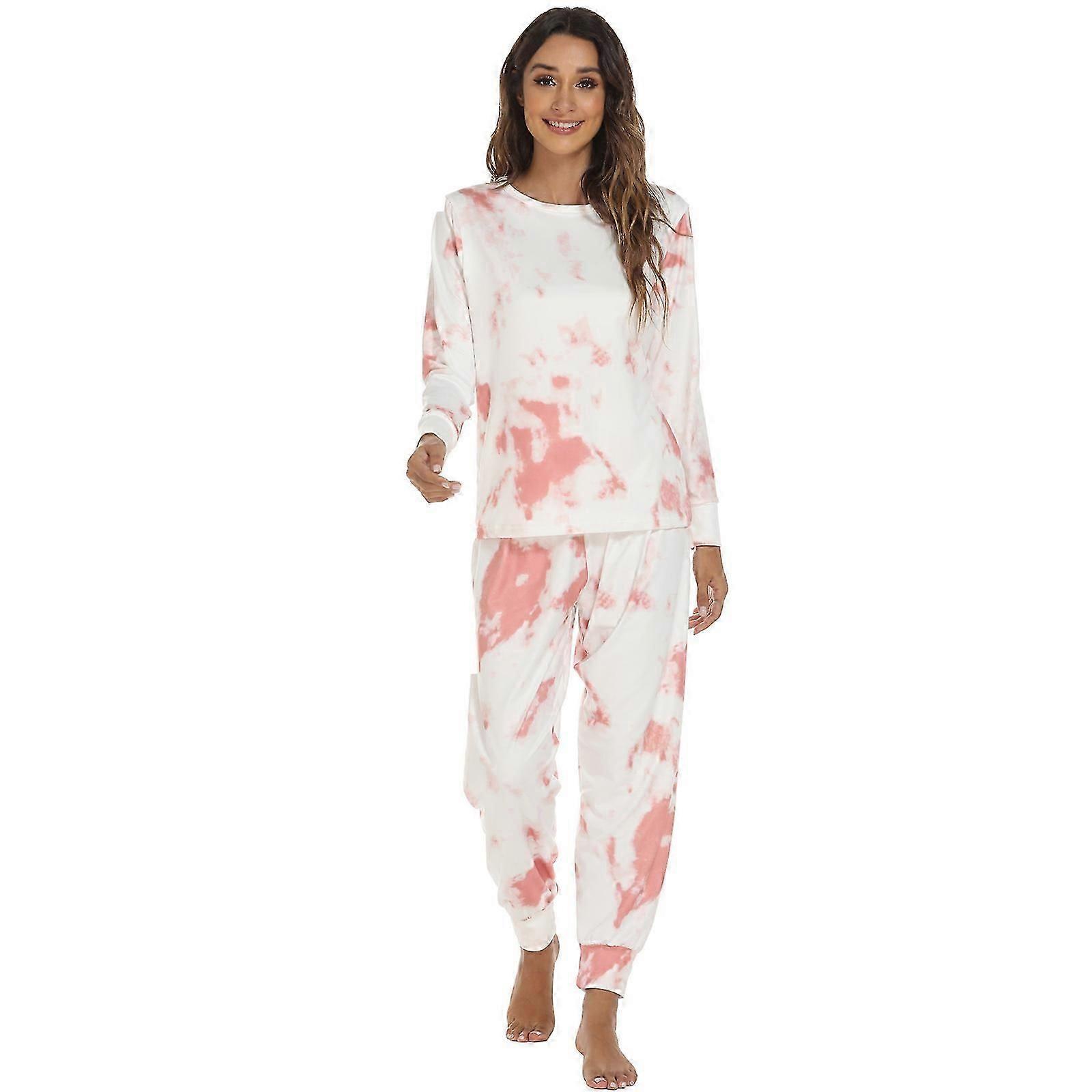 Womens Tie Dye Print 2 Piece Pajamas Set Long Sleeve Shirts Top with Long Pants Sleepwear Soft Loungewear Jogger Suit purple pink XL