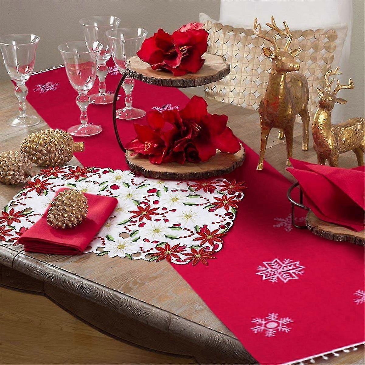 Enhanced Embroidery Christmas Poinsettia and Holly Placemats Set, 6-Piece with 11x17 Inch Design for Festive Table Decor
