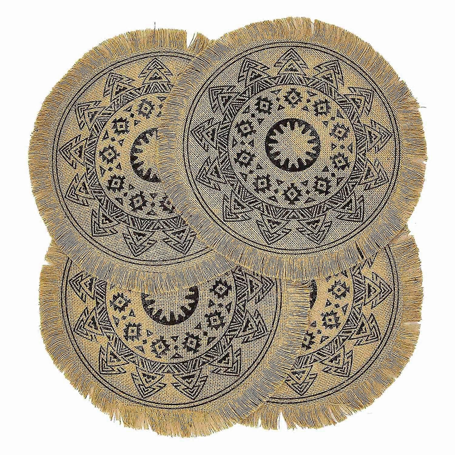 Round Placemats Set Of 4,boho Woven Jute Table Mats With Pompom