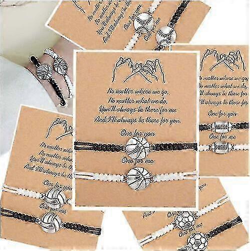 2pcs Bracelet With Message Card, Ball Sports Bracelet Adjustable Woven Bracelet Feature:Message Card Bracelets: * I promise to wear this bracelet to remind me how lucky I am to have you *, this is our little finger promise The small Bracelet carries the best wishes of you and your friends / lovers to promote the growth of friendship or love.Perfect gift: This set of 2 bracelets is a lovely gift. It comes with a message card, which will definitely make the recipient's face smile. This is the perfect little gift for you and your friends.Multiple designs: Sports woven adjustable couple bracelet, hand-made rope bracelet, with various tennis, basketball, volleyball, football and football shapes, we will add more in the future. Wear it as a friendship bracelet, couple bracelet, family bracelet or as a gift to thank others.Adjustable size Bracelet: about 6.3-11in circumference, suitable for almost everyone.Suitable for women, men, teenagers, boys and girls as birthday gifts, anniversary gifts, graduation gifts, Christmas gifts, etc.Material: Zinc Alloy + RopeSize: circumference about 6.3-11in; Message Card 2.873.74inPackage includes:2PCS Bracelet with Message Card