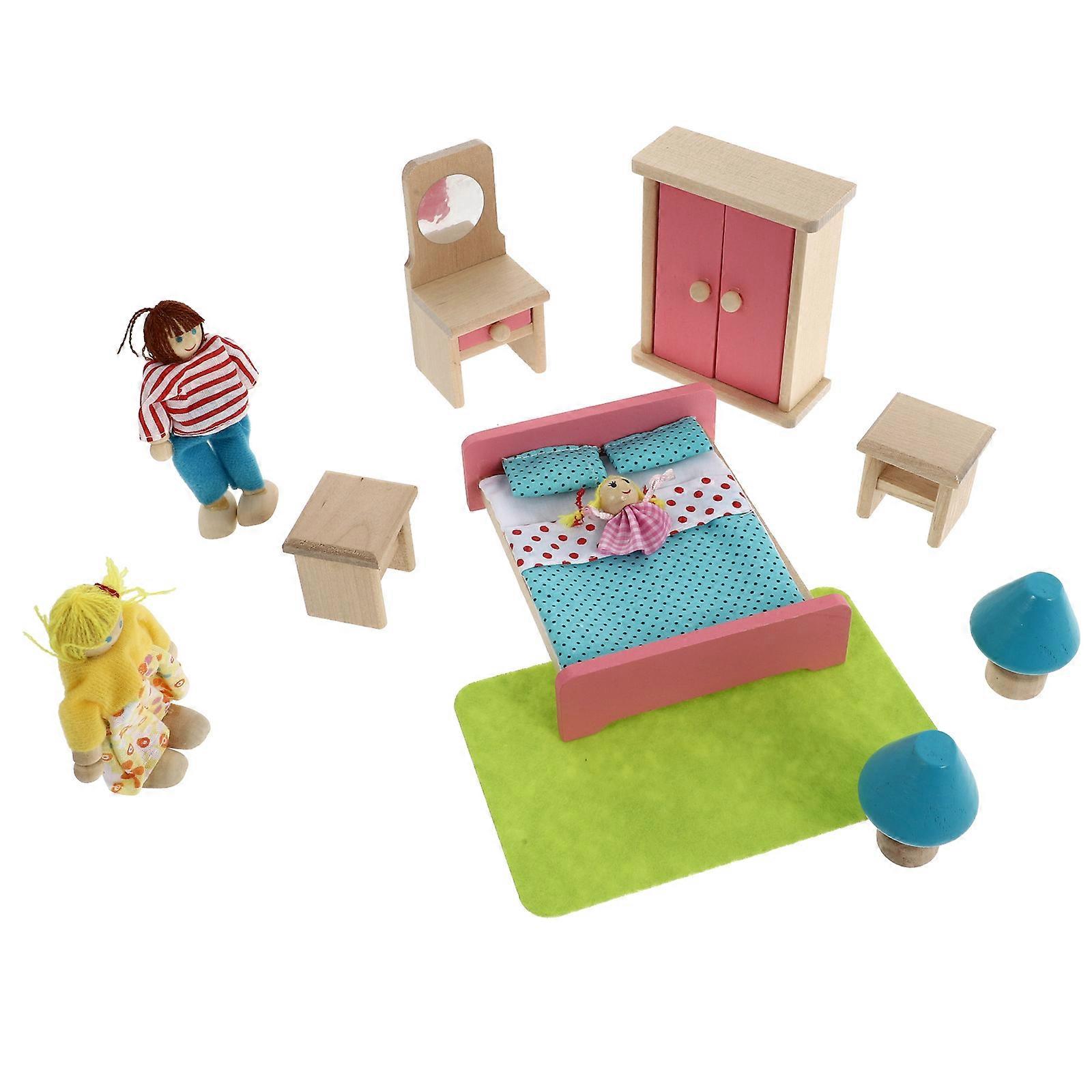 This is a wooden miniature house furniture kit. It's very adorable furniture set for which will make kid's mini house more cozy and , and also great as kids room desktop decor with sweet style and vivid color. It will be a wonderful gift toy and surprise for your kids to play game and decorate his or her mini house. Features -Color: As shown -Material: wood, cloth -Packing Size: 20.00x18.00x6.00cm/7.87x7.09x2.36in -Note: The dolls are included. -This toy set can also be placed at home to be a decoration, due to it is also very beautiful. -Through this toy set, parents and children will have more interaction and be more intimate. -The simulation bedroom toy can cultivate children's various abilities in the process of playing. -Made of high-quality and safe wood and cloth materials, accompanying your child . can play game with friends and parents, it will improve their communication and social skills. Package list: 1 x Set of Mini Bedroom Toys