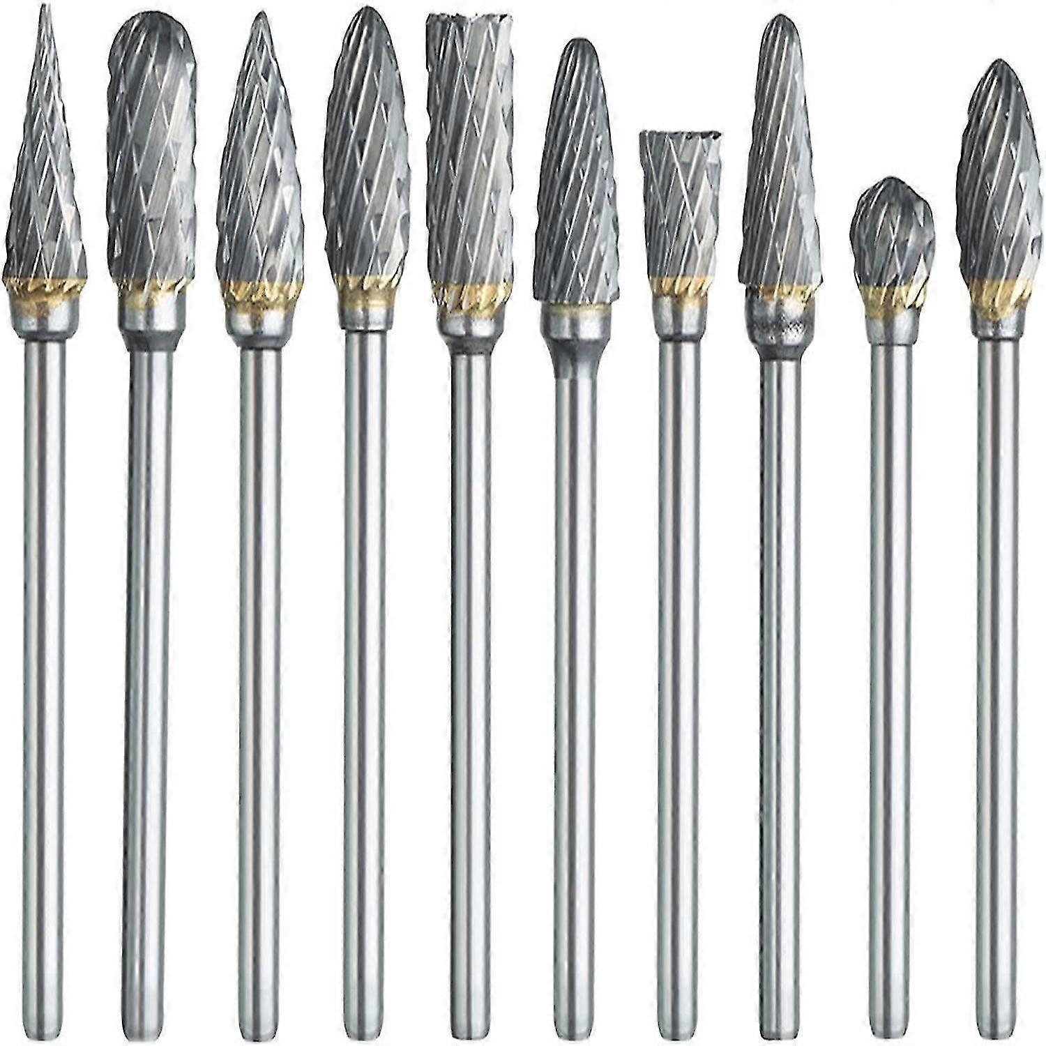 Rotary Burr Set for Dremel, 10 PCS Double Cut Carbide Carving Bits Set with 1/8" Shank and 1/4" Head Length for DIY, Woodworking, Engraving, Metal Car
