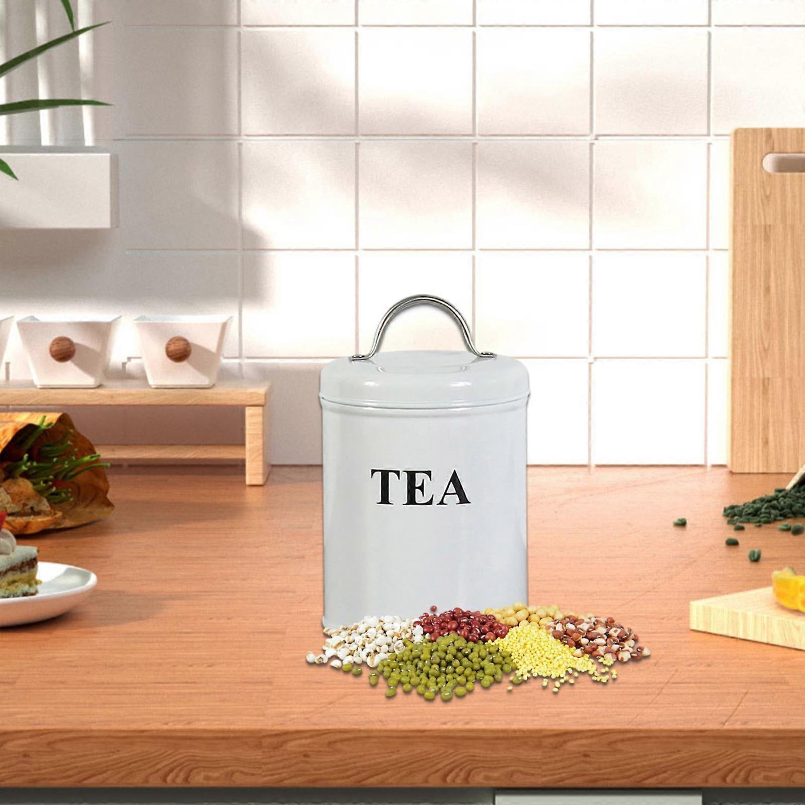 Vintage Retro Farmhouse Metal Storage Containers with Lids, Compatible with Begine, Canister Set for Coffee, Tea, Sugar, Includes Tray, White &