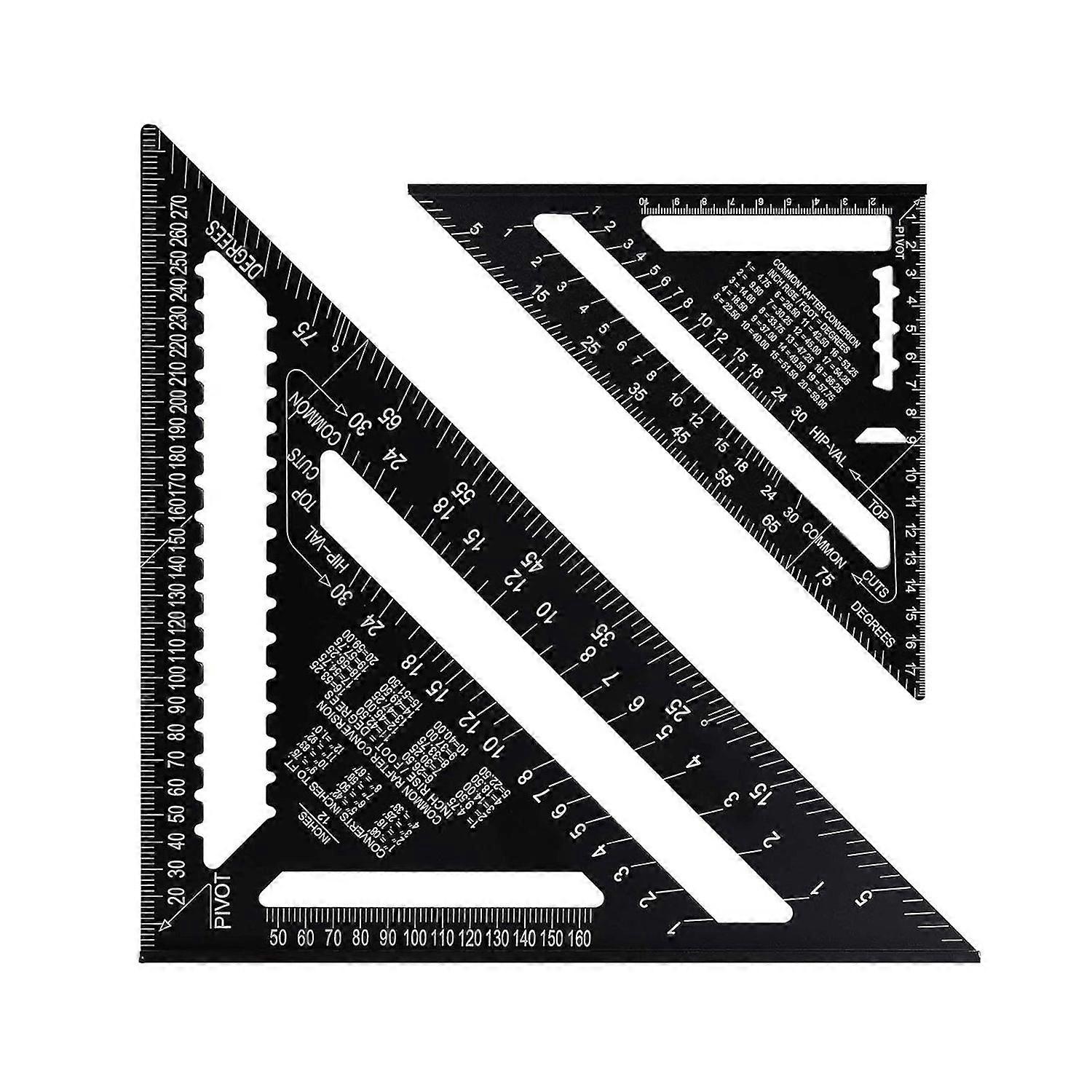 Aluminum Carpenter Triangle Ruler 7/12 Inch Set, Black, 2pcs