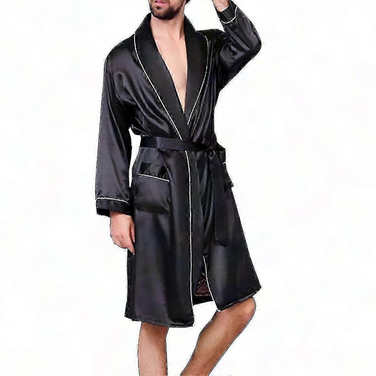 Men's Silk-Feel Robe and Short Set - Comfortable Printed Sleepwear for Relaxation & Lounging