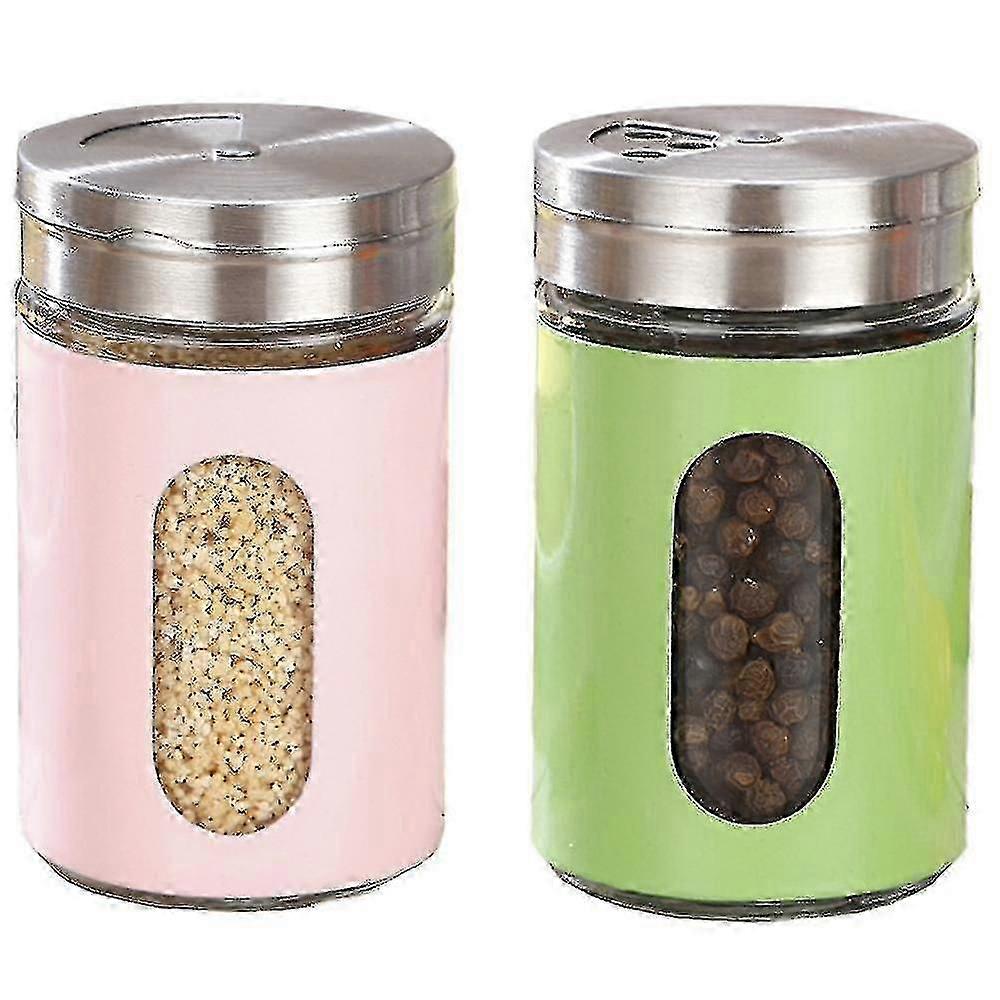 Salt And Pepper Shakers Stainless Steel And Glass Set With Adjustable Pour Holes