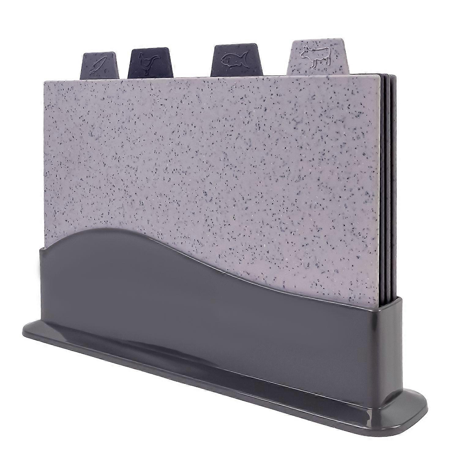 Schneidebrett Set 5-teilig mit 4 Brettern und einer Halterung aus Kunststoff in Grau - BPA freies Küchenbrett