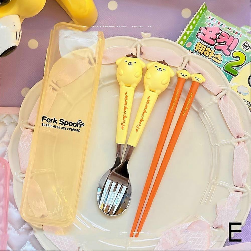 For Kids 3-in-1 Cartoon Cutlery Set Stainless Steel Spoon Fork Chopsticks Dishwasher Safe Ergonomic Grip