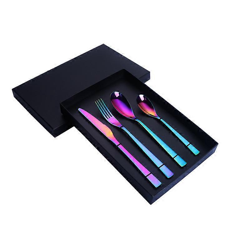 Square handle 4-piece set - fantasy color western hotel 304 stainless steel cutlery set creative and convenient ins steak knife, fork and spoon