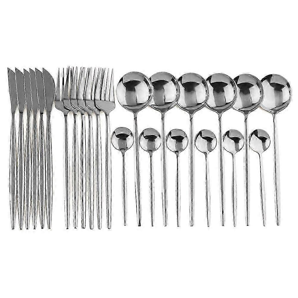 24 Piece Stainless Steel Tableware Sets of Dishes Knifes Spoons Forks Set Cutlery Dinnerware Set Spoon
