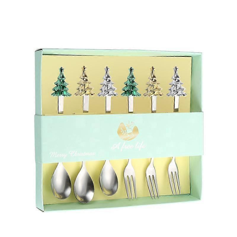 6-Piece Christmas Tree Utensil Set Stainless Steel Coffee Spoons, Dessert Forks with Gift Box