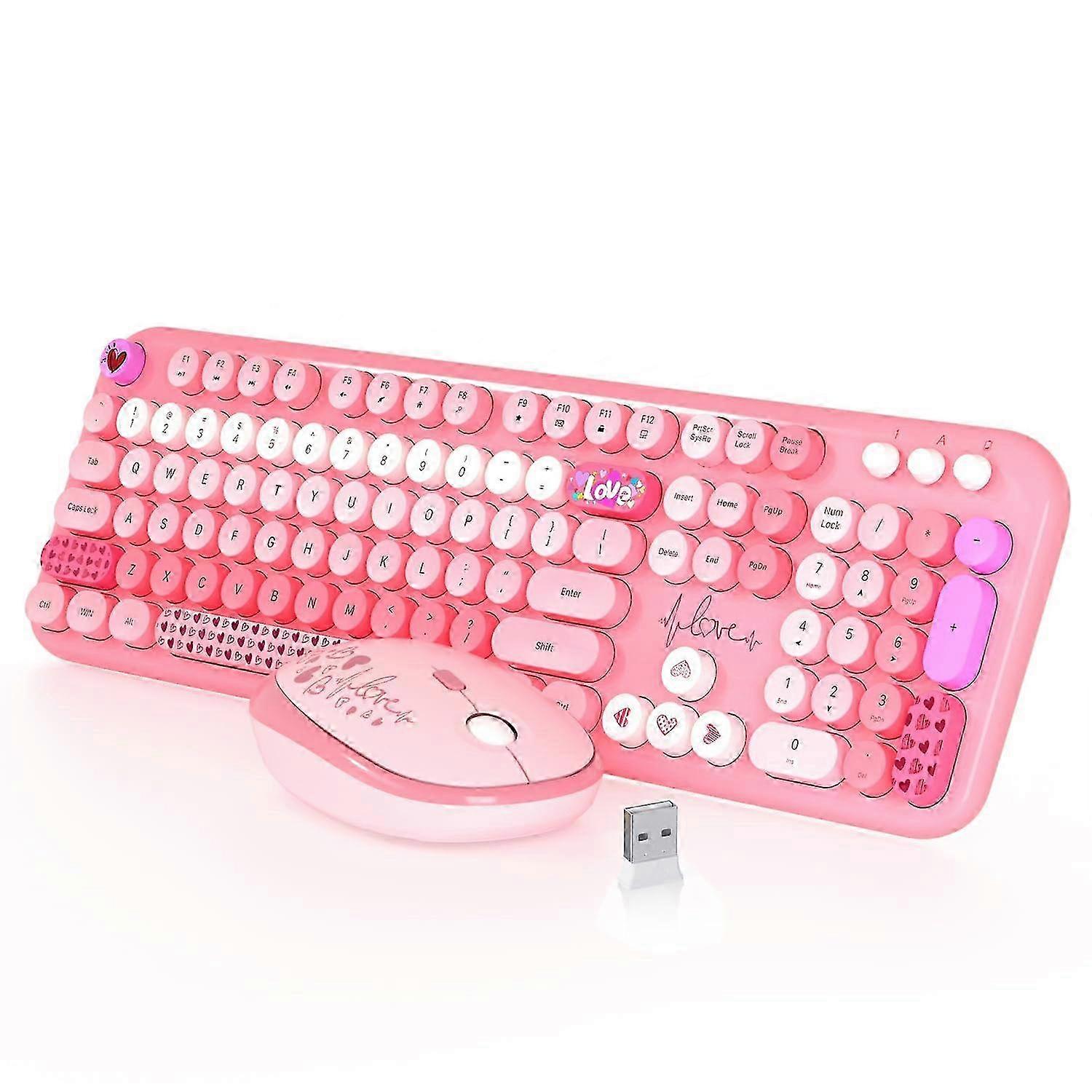 Full-Size Wireless Keyboard and Mouse Set for Laptop PC, Colorful Cute Design, Ergonomic, USB Compatible