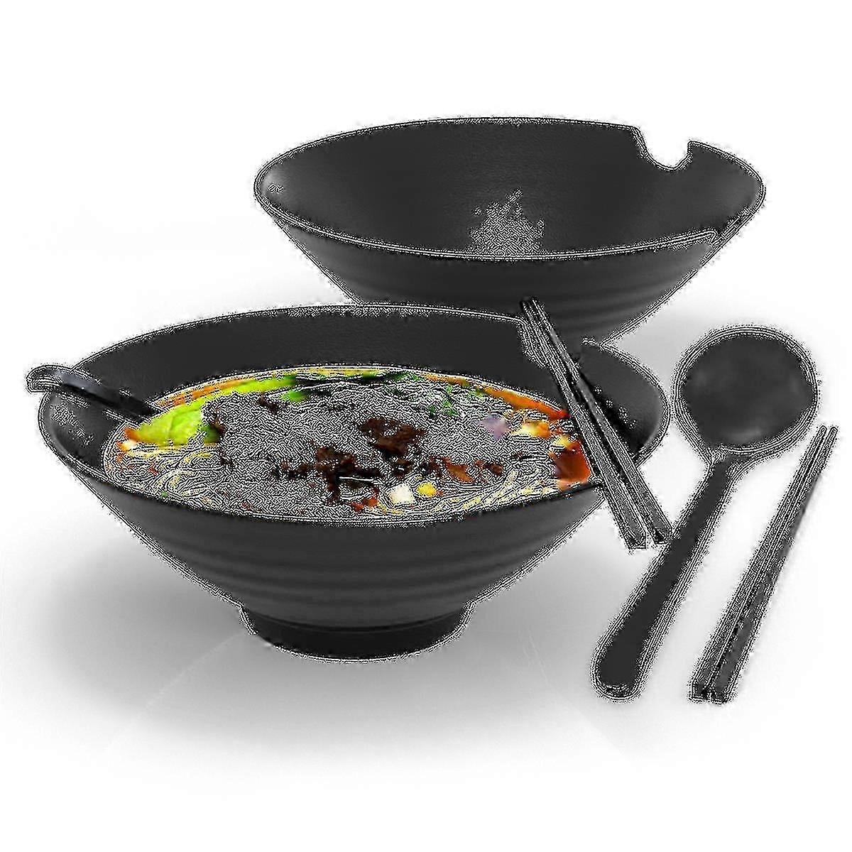 6-piece Ramen Bowl Set With 1000 Ml Filling Quantity - Traditional Japanese Crockery Set With Chopsticks And Spoon In Black w