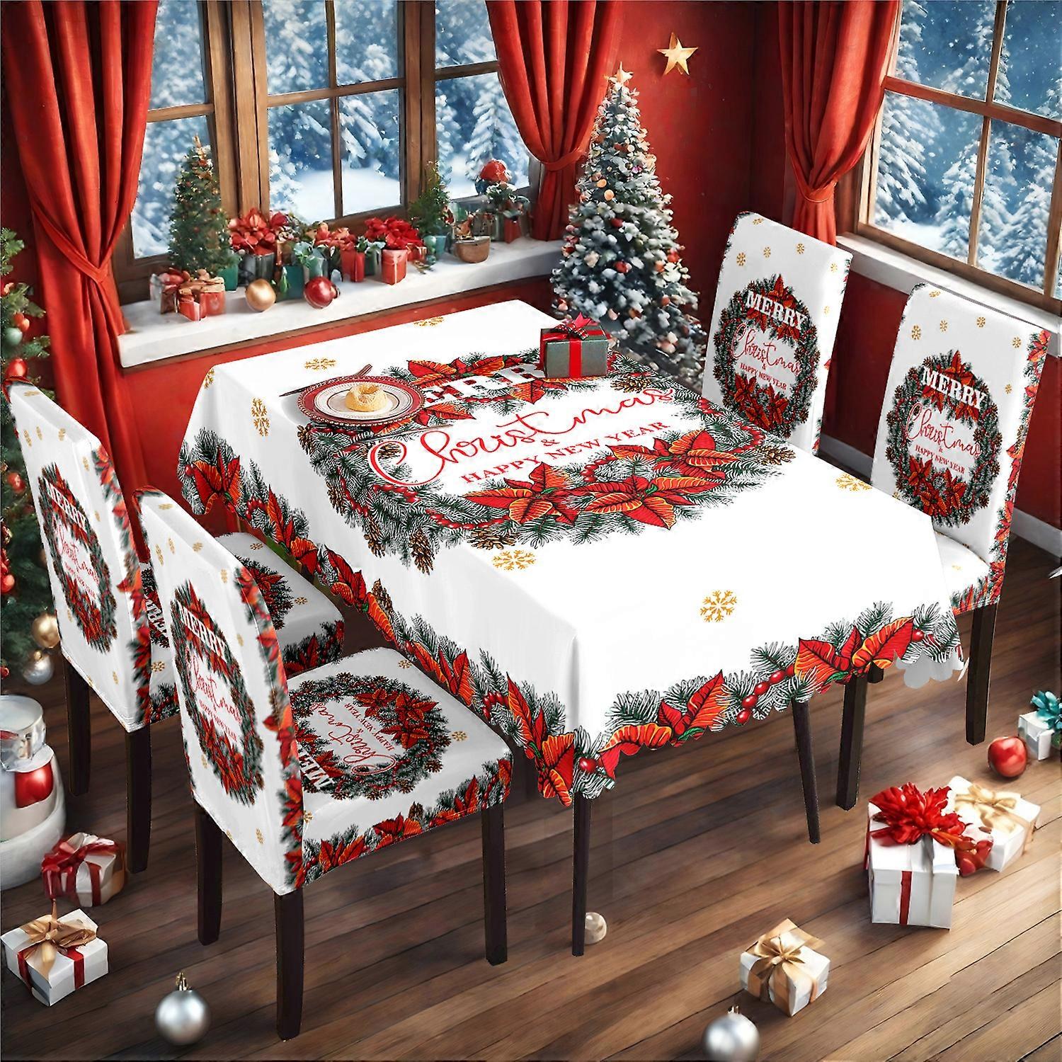 Christmas waterproof tablecloth and chair cover with milk print TC-175 set (140*210cm waterproof tablecloth + 4 chair covers)