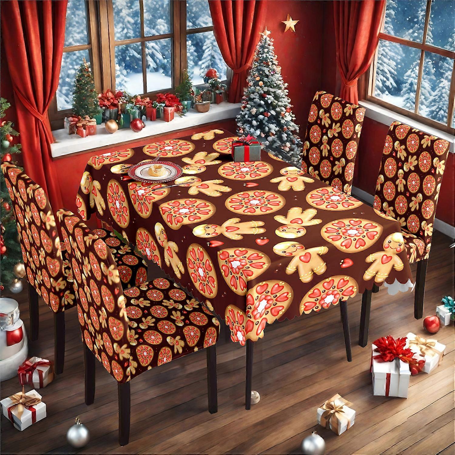 2025 New Christmas Gingerbread Man Print Tablecloth and Chair Cover Set All-Inclusive Milk Silk Chair Cover TC-255 Set (140*210cm Waterproof