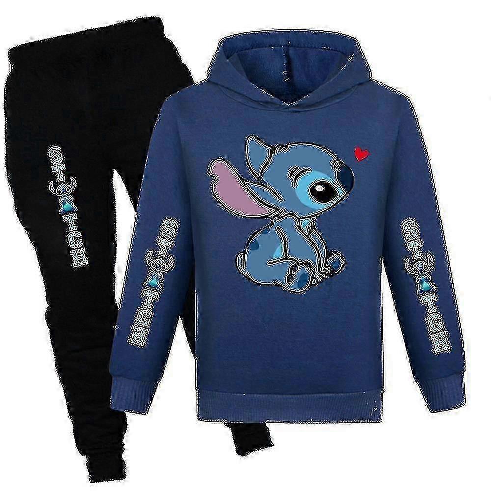 Lilo Stitch Print Kids Tracksuit Set Casual Hooded Sweatshirt Pants...