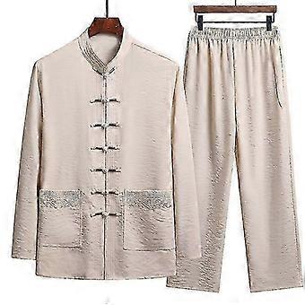 Conjunto de uniforme masculino de kung fu chinês tradicional de outono - mistura de algodão e linho, blusa retrô com calças, roupa respirável de tai chi com fivela hanfu