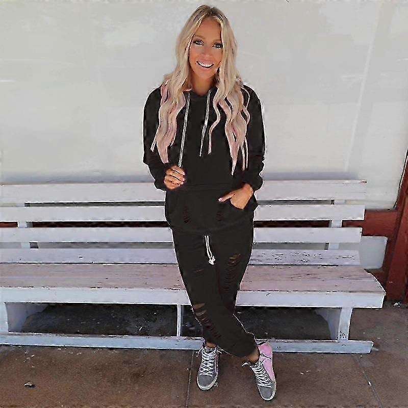 Women's Solid Color Top + Pants set Hooded Long Sleeve Hoodies Loose Casual Set Hoddies for Women