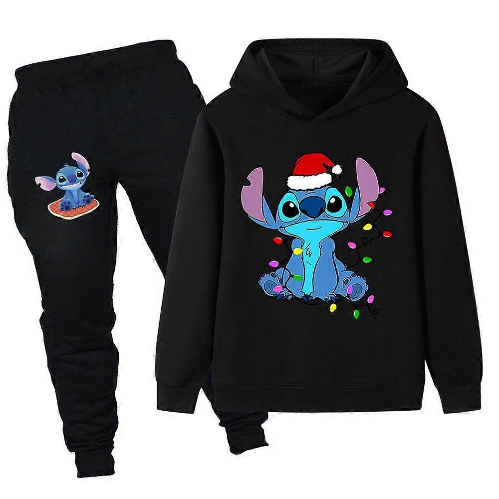 Kids Christmas gifts printed children's set, children's hoodie sweatshirt set, PB1109 black