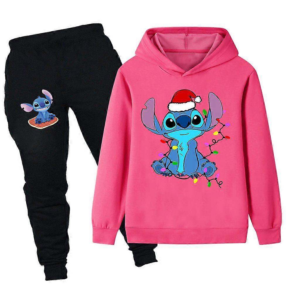 Kids Christmas gifts printed children's set, children's hoodie sweatshirt set, PB1109 rose red