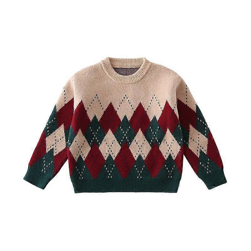 Red Diamond Pattern Sweater Set Kids Fleece Lined Denim Pants