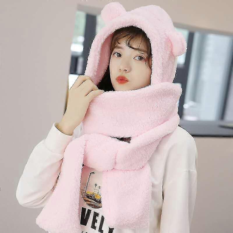Three-in-one Multifunctional Cartoon Bear Ear Lamb Fur Hat Scarf&gloves @BUGU